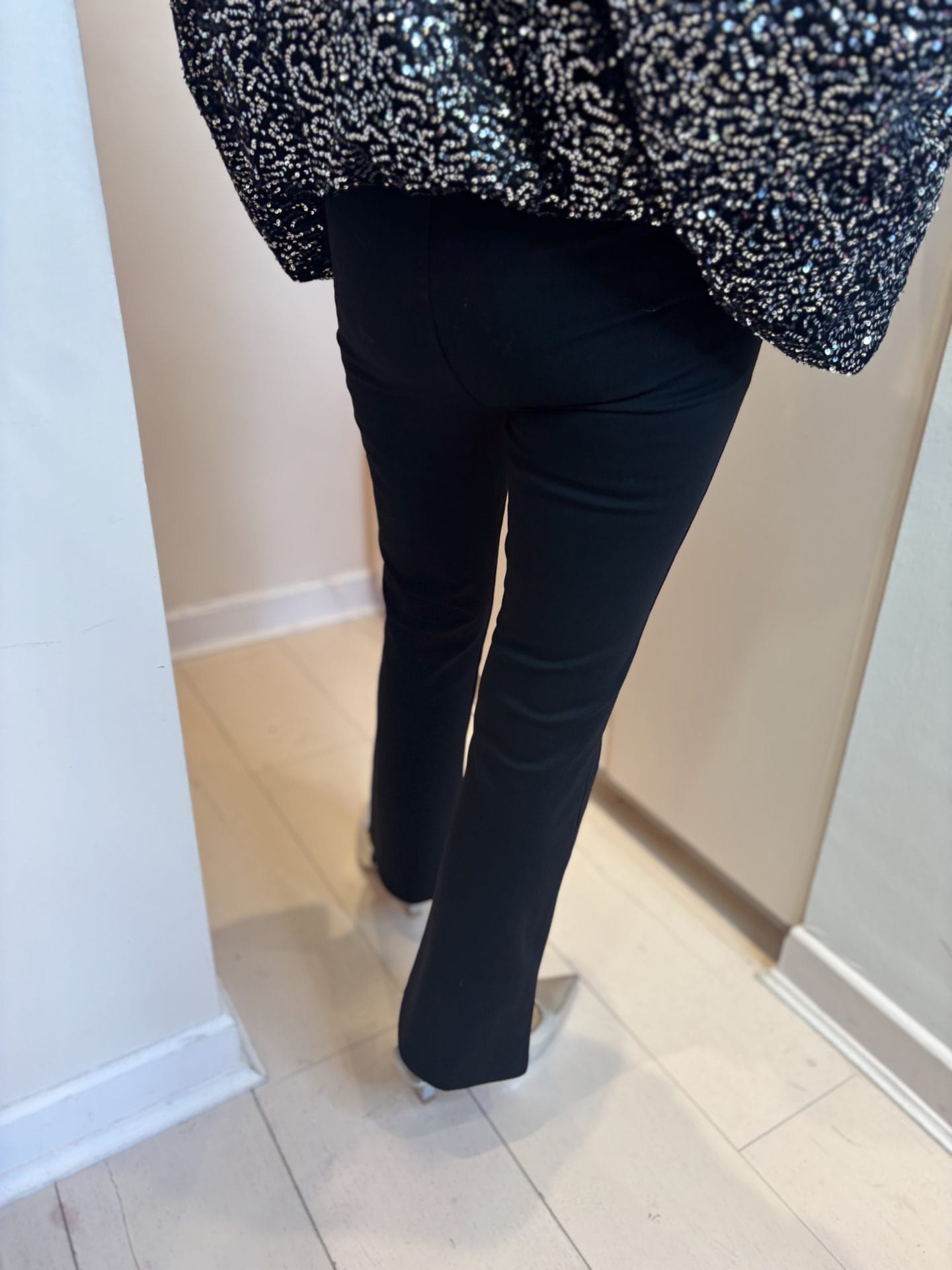 A flattering kick flared design means you can effortlessly style these stretchy trousers with all your fave shoes